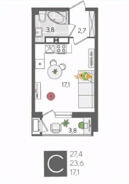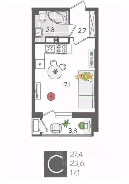 В продаже студия от застройщика! ЖК "Рекорд", г. Краснодар, Литер 2, общей площадью 27.4 кв.м., на 16 этаже.
