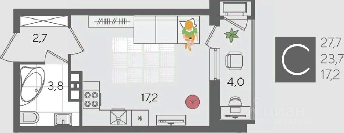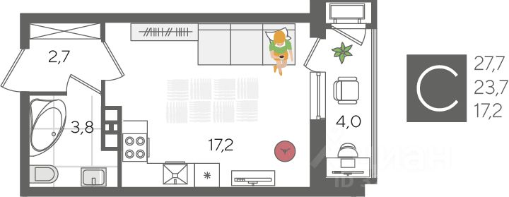 В продаже студия от застройщика! ЖК "Рекорд", г. Краснодар, Литер 3, общей площадью 27.7 кв.м., на 5 этаже.