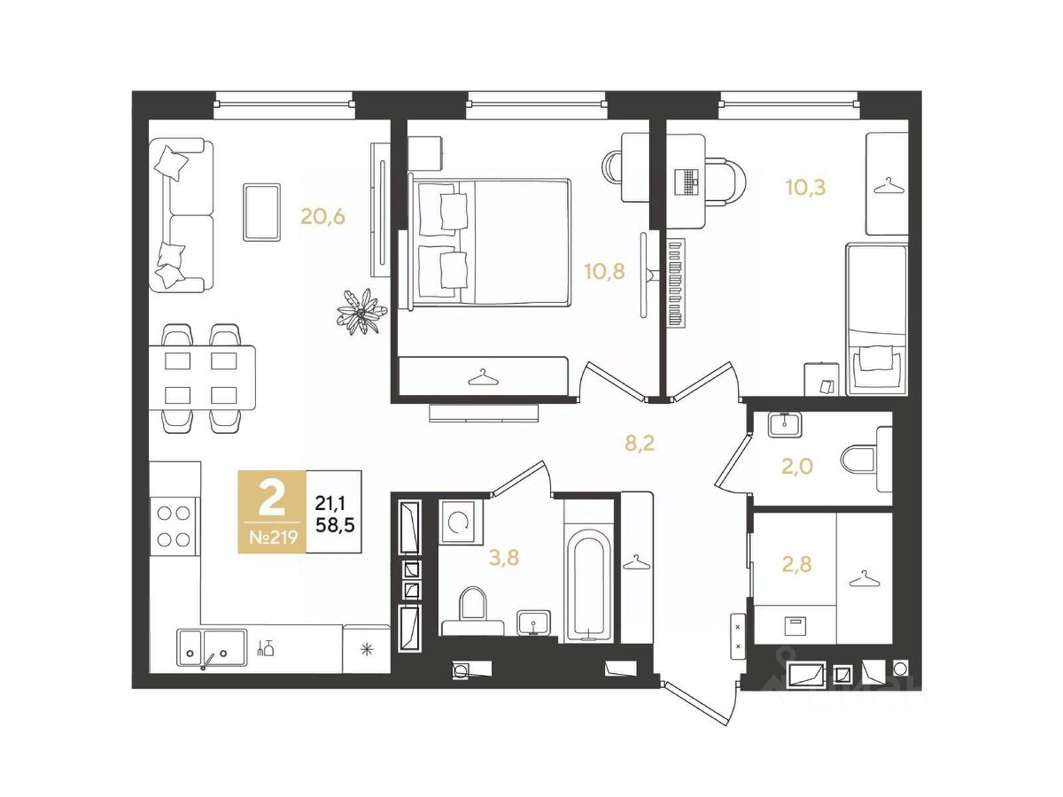 Продаётся 2-комнатная квартира от застройщика DOGMA .