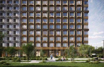 Безупречно гладкие навесные вентилируемые фасады благородного оттенка латуни.