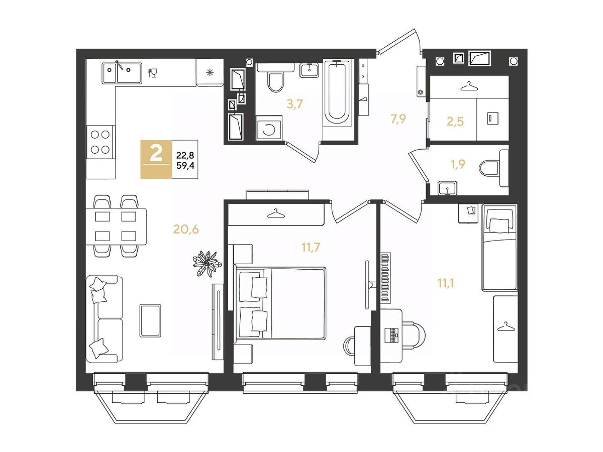 Продаётся 2-комнатная квартира от застройщика DOGMA .
