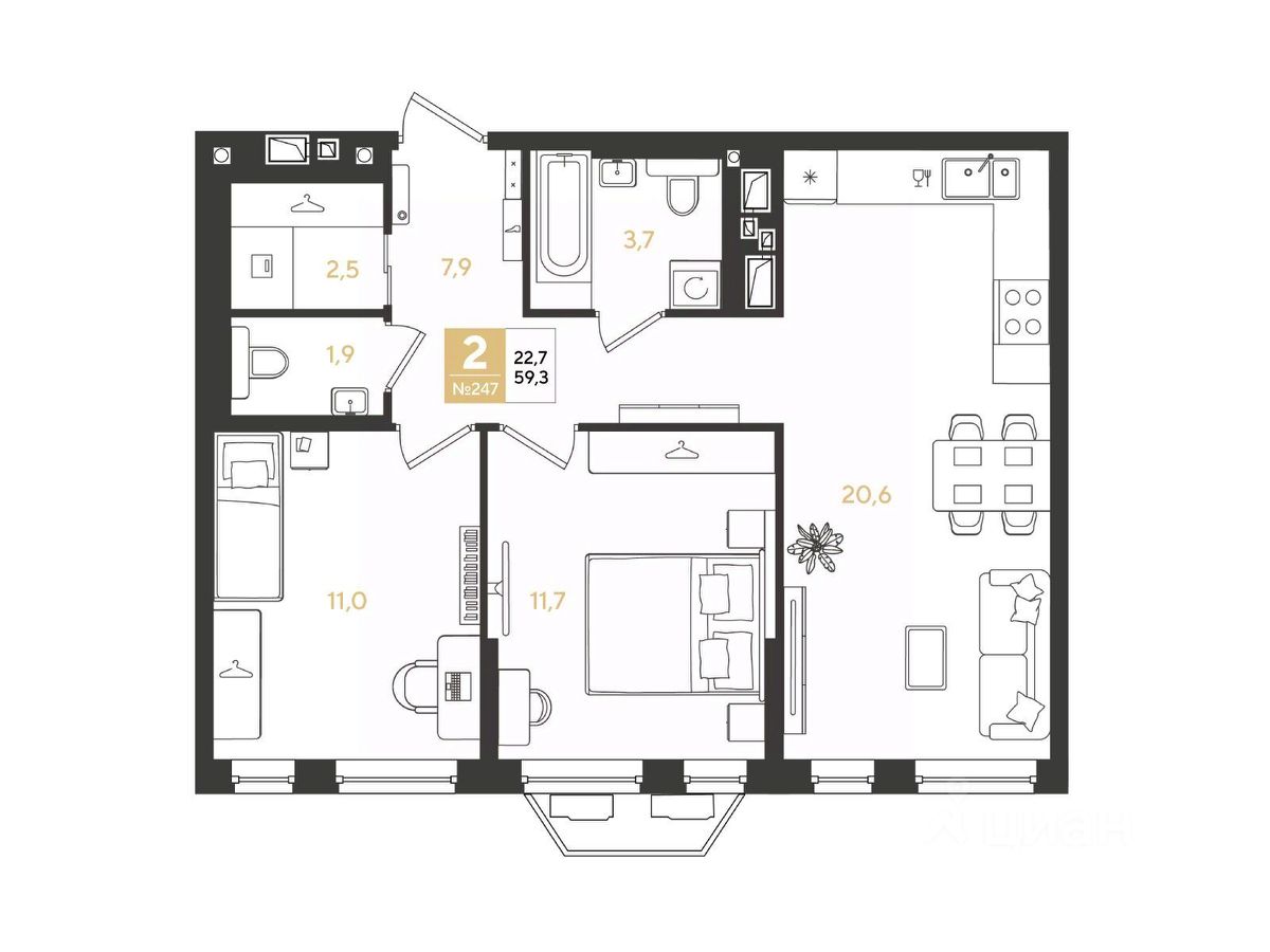 Площадь: 59.30 кв . м