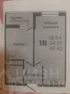 Общая площадь квартиры 36,42 м2.