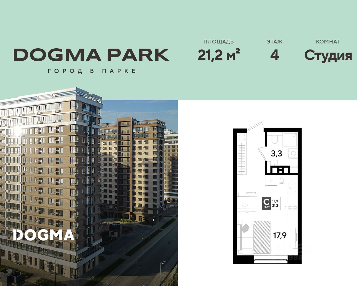 В продаже квартира-студия от застройщика! Мкр. "DOGMA PARK" г. Краснодар, Литер 33 Срок сдачи: 3 кв. 2027, общей площадью 21.2 кв.м., на 4 этаже.