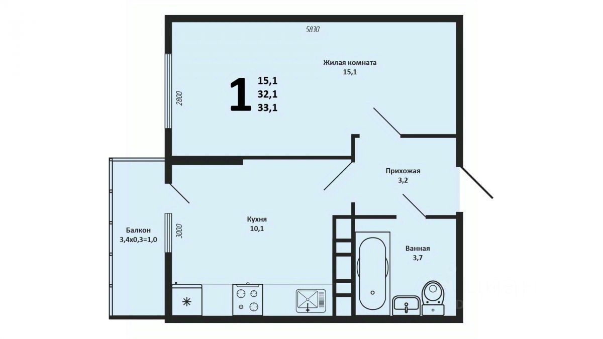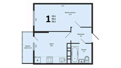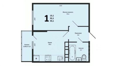 - Комната: 15,4 м²