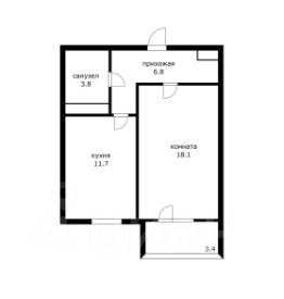 Широкая кухня 11,7 м2. изолированная комната 18 м2, совмещенный санузел 3,8 м2 с душевой зоной.
