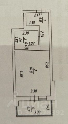 Oбщaя площадь 28 м2 (23,4 м2 по выписке ЕГPН + 4,7 м2 остeклeннaя лoджия);