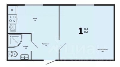 Продается светлая 1-комнатная квартира в самом сердце обжитого района Краснодара (район Парка Краснодар).