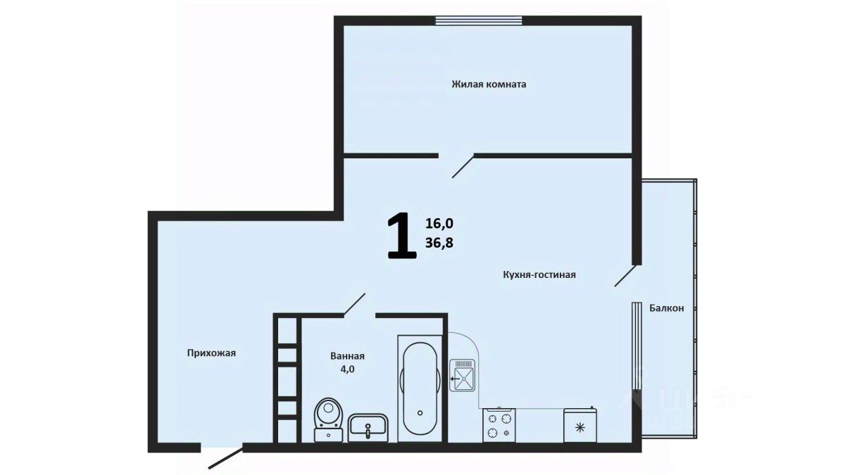 Адрес: ЖК "Цветы" Тип: 1-комнатная / Евро-двухкомнатная Площадь: 36,8 м² (без балкона) Этаж: 15-й (Видовой)