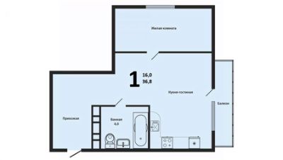 Идеальная Планировка: Площадь 36.8 м² использована максимально эффективно: выделена отдельная спальня и просторная кухня-гостиная. Это очень удачная планировка формата Евро-2, которая всегда ценится выше, чем студия или стандартная однушка.