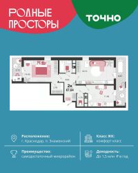 "Родные просторы"- самодостаточный микрорайон, который реализован по принципу комплексного развития территории, где есть вся инфраструктура для комфортной жизни. На территории 41 га 29 домов от 9 до 24 этажей, уютные дворы со спортивными и игровыми площадками, социальные и коммерческие объекты, зеленые массивы и фонтаны. Главная точка притяжения "Родных просторов" - парк семейного отдыха площадью 9 га, 4,5 км прогулочных аллей, амфитеатр для мероприятий, кинофестивальная площадка. Особая гордость микрорайона современная школа на 1550 мест и 3 детских сада "Ладушки", "Веснушки" и "Топотушки" на 880 малышей. В центре микрорайона строятся фитнес-клуб BALANCE с акватермальным комплексом и собственная поликлиника, площадью более 5000 кв.м. Уже открыт православный храм Святых Первоверховных апостолов Петра и Павла.