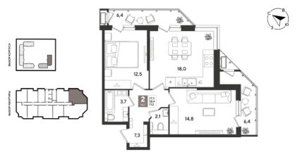 В продаже 2-к квартира от застройщика! ЖК "Рекорд" 2 очередь, г. Краснодар, Литер 6. Срок сдачи: 2 кв. 2026, общей площадью 71.2 кв.м., на 2 этаже.