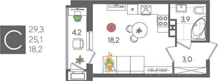 В продаже студия от застройщика! ЖК "Рекорд" 2 очередь, г. Краснодар, Литер 6. Срок сдачи: 2 кв. 2026, общей площадью 29.3 кв.м., на 5 этаже.