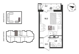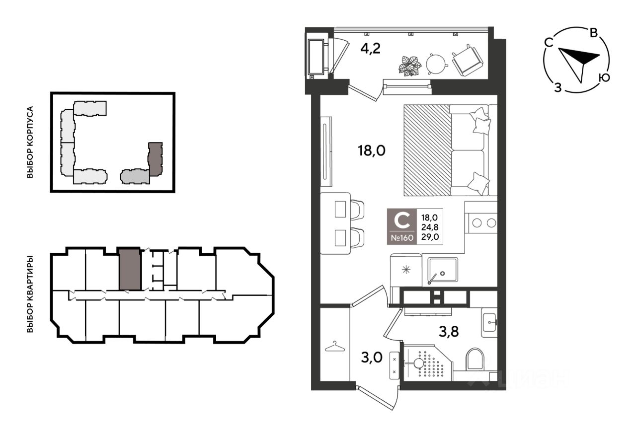 В продаже студия от застройщика! ЖК "Рекорд" 2 очередь, г. Краснодар, Литер 6. Срок сдачи: 2 кв. 2026, общей площадью 29 кв.м., на 17 этаже.