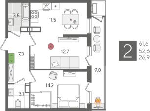 В продаже 2-комнатная квартира от застройщика! ЖК "Рекорд" 2 очередь, г. Краснодар, Литер 6 Срок сдачи: 4 кв. 2026, общей площадью 61.6 кв.м., на 23 этаже.