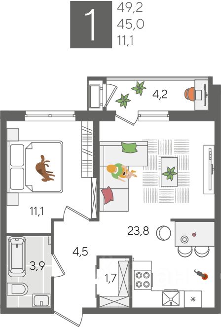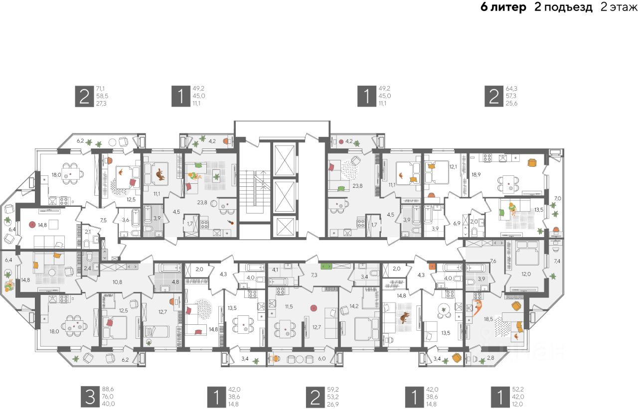 В продаже 1-комнатная квартира от застройщика! ЖК "Рекорд" 2 очередь, г. Краснодар, Литер 6 Срок сдачи: 4 кв. 2026, общей площадью 49.2 кв.м., на 2 этаже.