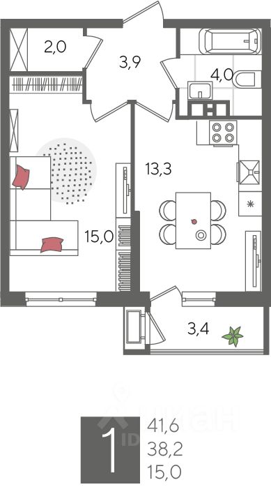 В продаже 1-комнатная квартира от застройщика! ЖК "Рекорд" 2 очередь, г. Краснодар, Литер 6 Срок сдачи: 4 кв. 2026, общей площадью 41.6 кв.м., на 5 этаже.