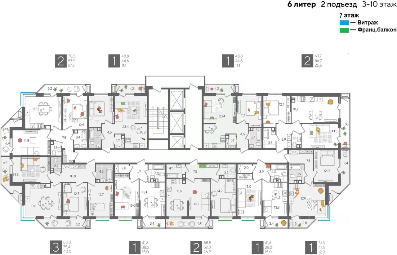 В продаже 2-комнатная квартира от застройщика! ЖК "Рекорд" 2 очередь, г. Краснодар, Литер 6 Срок сдачи: 4 кв. 2026, общей площадью 58.8 кв.м., на 7 этаже.
