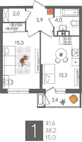 В продаже 1-к квартира от застройщика! ЖК "Рекорд" 2 очередь, г. Краснодар, Литер 6. Срок сдачи: 2 кв. 2026, общей площадью 41.6 кв.м., на 8 этаже.