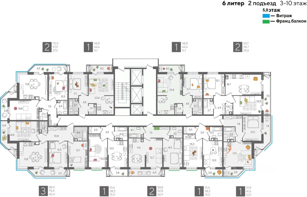 В продаже 2-комнатная квартира от застройщика! ЖК "Рекорд" 2 очередь, г. Краснодар, Литер 6 Срок сдачи: 4 кв. 2026, общей площадью 63.7 кв.м., на 9 этаже.