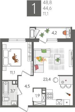 В продаже 1-комнатная квартира от застройщика! ЖК "Рекорд" 2 очередь, г. Краснодар, Литер 6 Срок сдачи: 4 кв. 2026, общей площадью 48.8 кв.м., на 9 этаже.