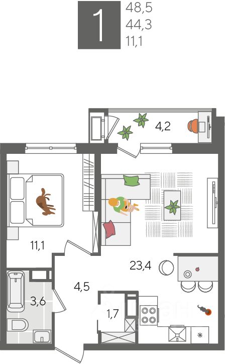 В продаже 1-комнатная квартира от застройщика! ЖК "Рекорд" 2 очередь, г. Краснодар, Литер 6 Срок сдачи: 4 кв. 2026, общей площадью 48.5 кв.м., на 14 этаже.
