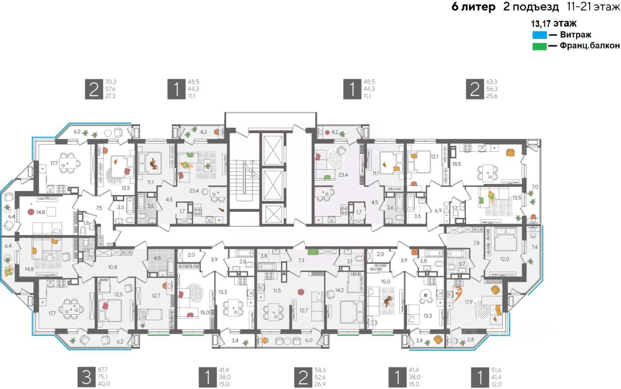 В продаже 2-комнатная квартира от застройщика! ЖК "Рекорд" 2 очередь, г. Краснодар, Литер 6 Срок сдачи: 4 кв. 2026, общей площадью 70.2 кв.м., на 17 этаже.