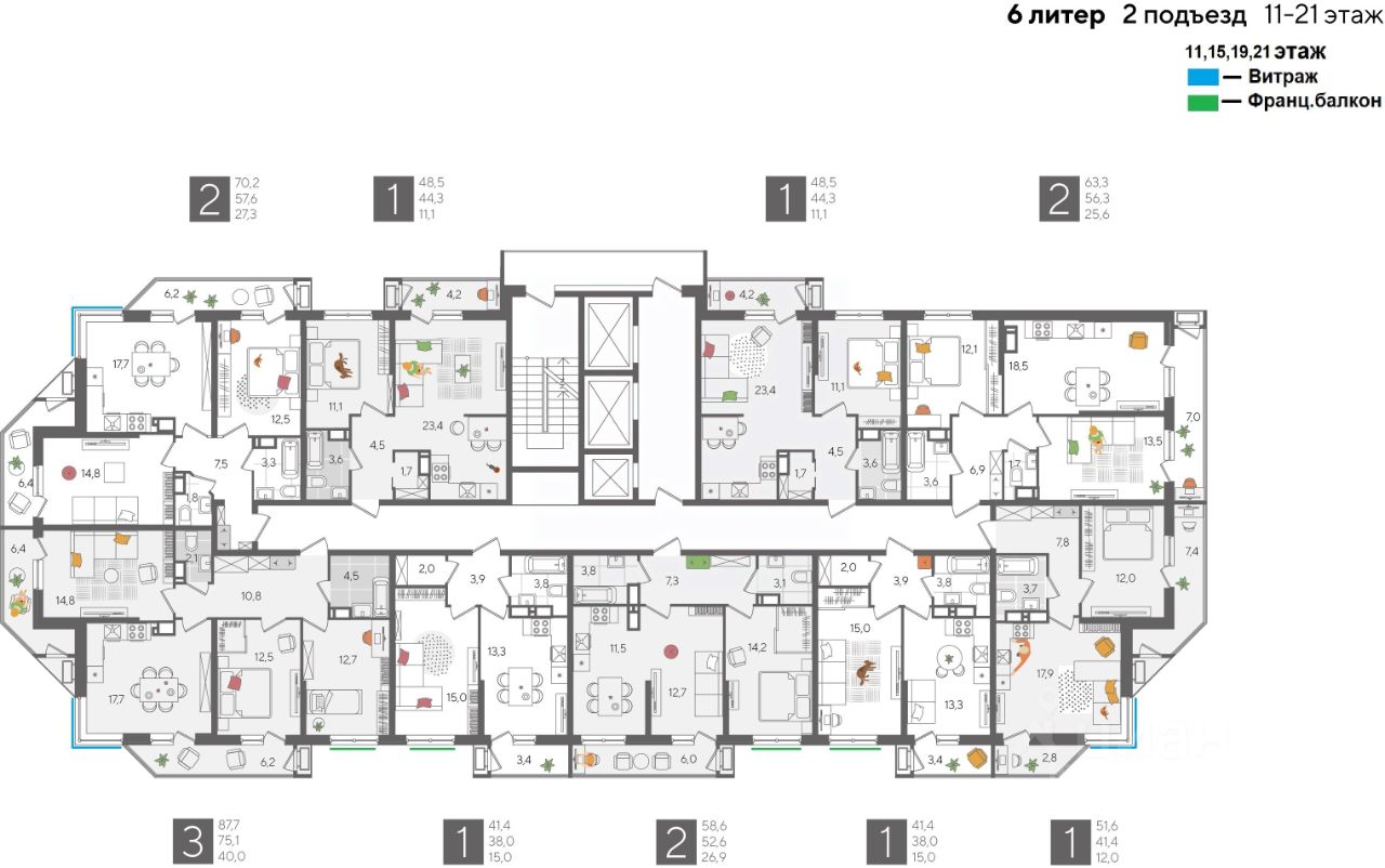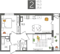 В продаже 2-комнатная квартира от застройщика! ЖК "Рекорд" 2 очередь, г. Краснодар, Литер 6 Срок сдачи: 4 кв. 2026, общей площадью 63.3 кв.м., на 21 этаже.