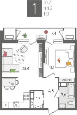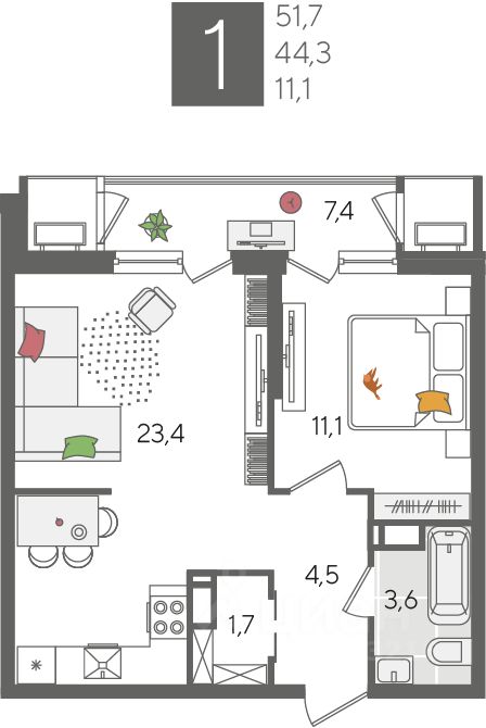 Общая площадь51,7 м²