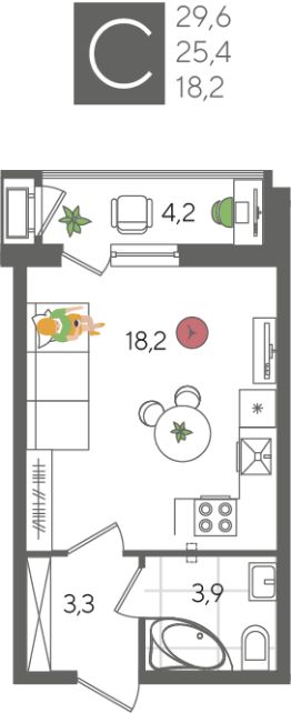 Общая площадь29,6 м²