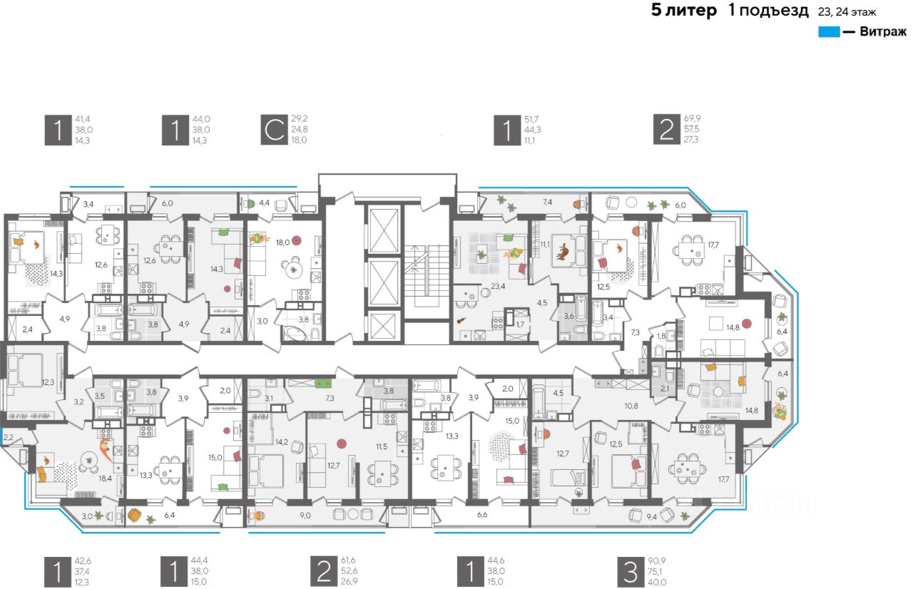 В продаже 3-комнатная квартира от застройщика! ЖК "Рекорд" 2 очередь, г. Краснодар, Литер 5 Срок сдачи: 4 кв. 2026, общей площадью 90.9 кв.м., на 24 этаже.