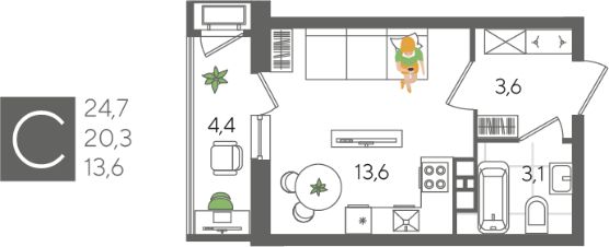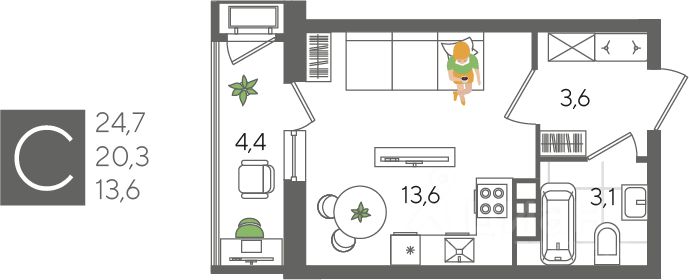 В продаже квартира-студия от застройщика! ЖК "Рекорд" 2 очередь, г. Краснодар, Литер 5 Срок сдачи: 4 кв. 2026, общей площадью 24.7 кв.м., на 3 этаже.