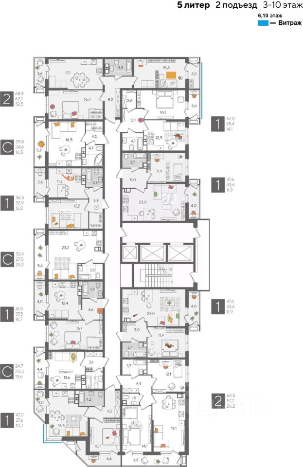 В продаже 1-комнатная квартира от застройщика! ЖК "Рекорд" 2 очередь, г. Краснодар, Литер 5 Срок сдачи: 4 кв. 2026, общей площадью 42 кв.м., на 6 этаже.