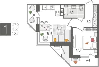 В продаже 1-комнатная квартира от застройщика! ЖК "Рекорд" 2 очередь, г. Краснодар, Литер 5 Срок сдачи: 4 кв. 2026, общей площадью 47 кв.м., на 10 этаже.