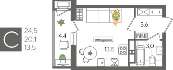В продаже квартира-студия от застройщика! ЖК "Рекорд" 2 очередь, г. Краснодар, Литер 5 Срок сдачи: 4 кв. 2026, общей площадью 24.5 кв.м., на 19 этаже.
