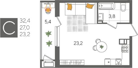 В продаже квартира-студия от застройщика! ЖК "Рекорд" 2 очередь, г. Краснодар, Литер 5 Срок сдачи: 4 кв. 2026, общей площадью 32.4 кв.м., на 3 этаже.