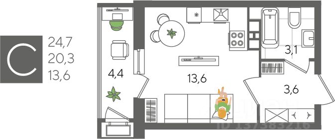 В продаже квартира-студия от застройщика! ЖК "Рекорд" 2 очередь, г. Краснодар, Литер 5 Срок сдачи: 4 кв. 2026, общей площадью 24.7 кв.м., на 7 этаже.
