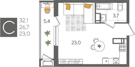 В продаже квартира-студия от застройщика! ЖК "Рекорд" 2 очередь, г. Краснодар, Литер 5 Срок сдачи: 4 кв. 2026, общей площадью 32.1 кв.м., на 11 этаже.