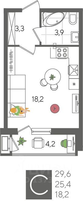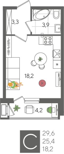 В продаже квартира-студия от застройщика! ЖК "Рекорд" 2 очередь, г. Краснодар, Литер 5 Срок сдачи: 4 кв. 2026, общей площадью 29.6 кв.м., на 2 этаже.