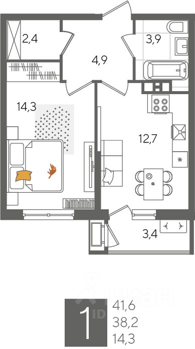 В продаже 1-комнатная квартира от застройщика! ЖК "Рекорд" 2 очередь, г. Краснодар, Литер 5 Срок сдачи: 4 кв. 2026, общей площадью 41.6 кв.м., на 5 этаже.