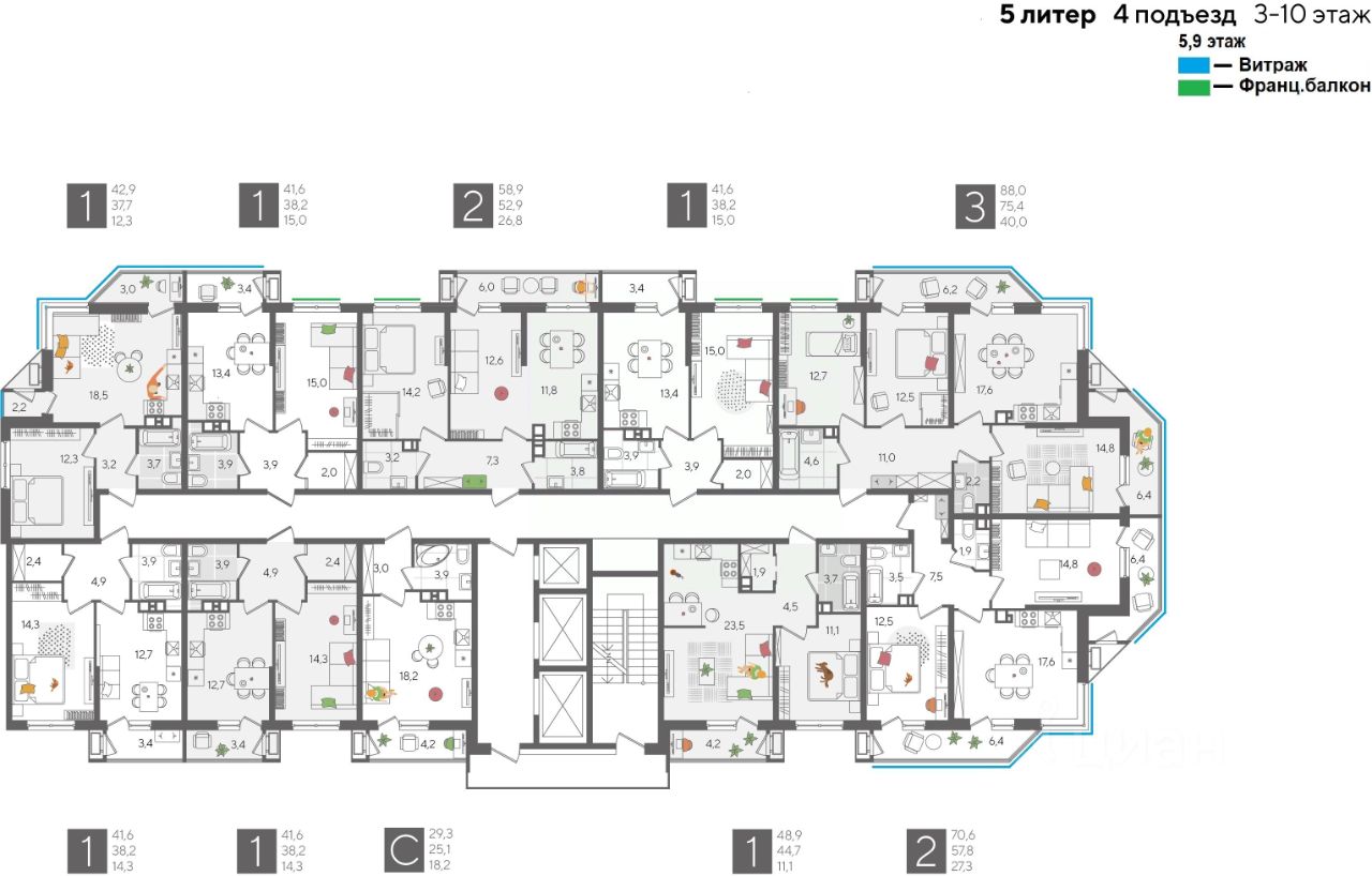В продаже 1-комнатная квартира от застройщика! ЖК "Рекорд" 2 очередь, г. Краснодар, Литер 5 Срок сдачи: 4 кв. 2026, общей площадью 41.6 кв.м., на 5 этаже.
