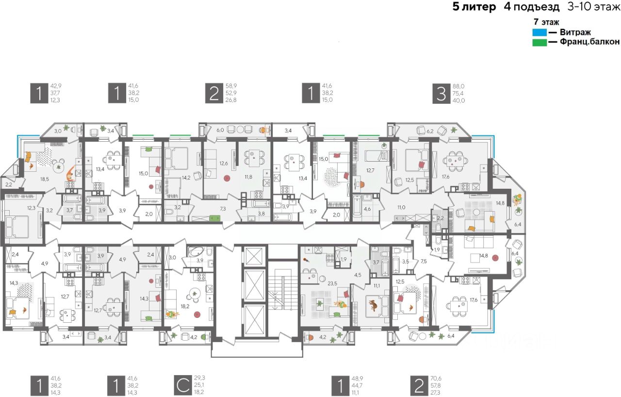 В продаже 1-комнатная квартира от застройщика! ЖК "Рекорд" 2 очередь, г. Краснодар, Литер 5 Срок сдачи: 4 кв. 2026, общей площадью 41.6 кв.м., на 7 этаже.