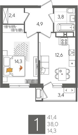 В продаже 1-комнатная квартира от застройщика! ЖК "Рекорд" 2 очередь, г. Краснодар, Литер 5 Срок сдачи: 4 кв. 2026, общей площадью 41.4 кв.м., на 12 этаже.