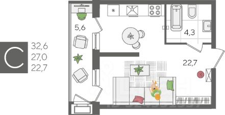 В продаже квартира-студия от застройщика! ЖК "Рекорд" 2 очередь, г. Краснодар, Литер 3 Срок сдачи: 4 кв. 2026, общей площадью 32.6 кв.м., на 2 этаже.