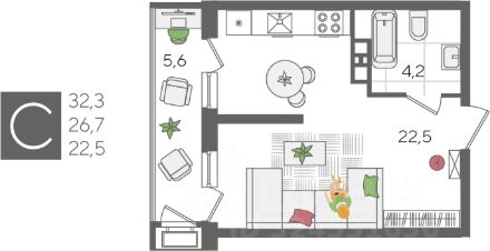 В продаже квартира-студия от застройщика! ЖК "Рекорд" 2 очередь, г. Краснодар, Литер 3 Срок сдачи: 4 кв. 2026, общей площадью 32.3 кв.м., на 5 этаже.