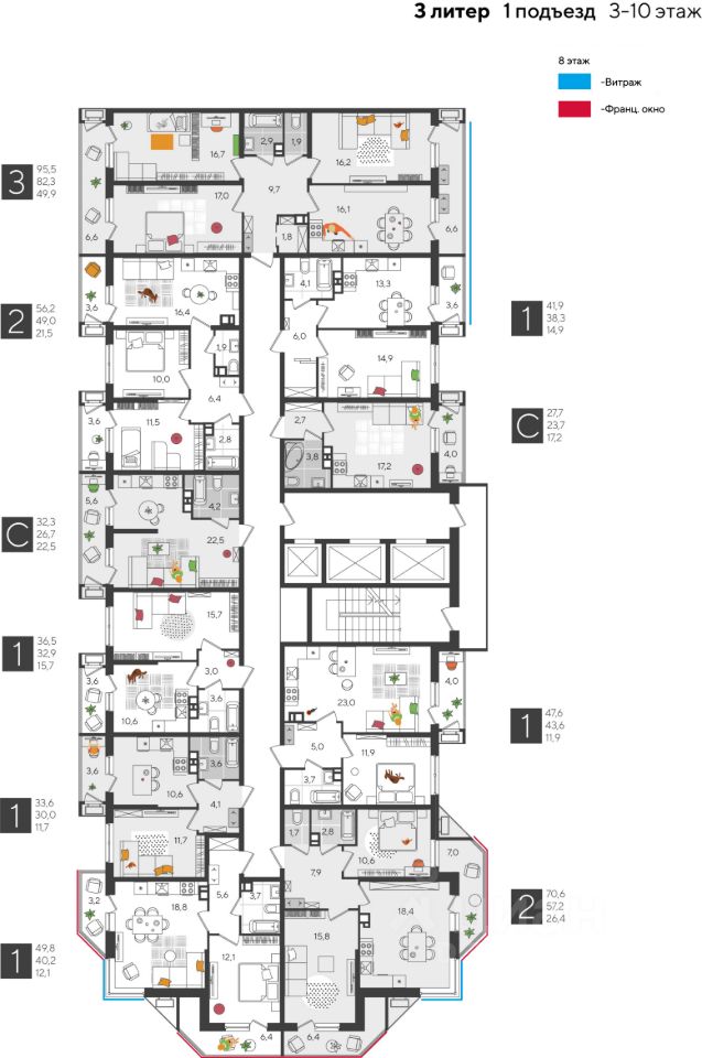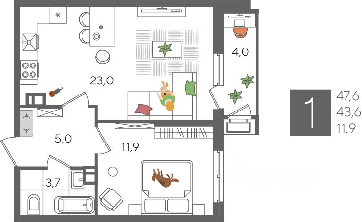 В продаже 1-комнатная квартира от застройщика! ЖК "Рекорд" 2 очередь, г. Краснодар, Литер 3 Срок сдачи: 4 кв. 2026, общей площадью 47.6 кв.м., на 8 этаже.