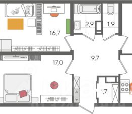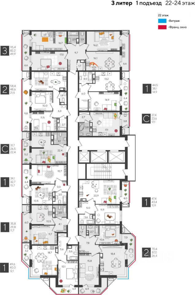 В продаже 3-комнатная квартира от застройщика! ЖК "Рекорд" 2 очередь, г. Краснодар, Литер 3 Срок сдачи: 4 кв. 2026, общей площадью 95.4 кв.м., на 22 этаже.