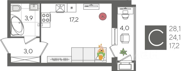 В продаже квартира-студия от застройщика! ЖК "Рекорд" 2 очередь, г. Краснодар, Литер 3 Срок сдачи: 4 кв. 2026, общей площадью 28.1 кв.м., на 2 этаже.