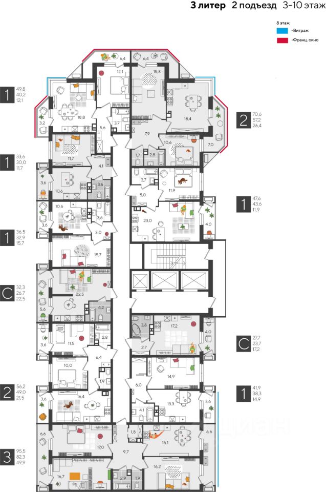 В продаже 3-комнатная квартира от застройщика! ЖК "Рекорд" 2 очередь, г. Краснодар, Литер 3 Срок сдачи: 4 кв. 2026, общей площадью 95.5 кв.м., на 8 этаже.