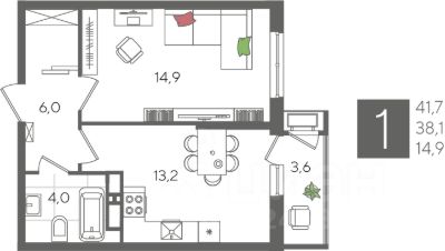 В продаже 1-комнатная квартира от застройщика! ЖК "Рекорд" 2 очередь, г. Краснодар, Литер 3 Срок сдачи: 4 кв. 2026, общей площадью 41.7 кв.м., на 18 этаже.